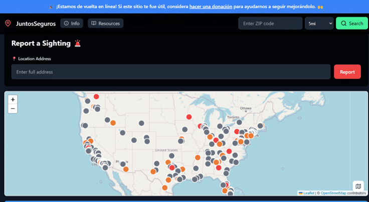 La peculiaridad de este sitio web es que se puede introducir la dirección en la que los migrantes se encuentran para que sea más fácil la ubicación de agentes de inmigración, pero también sirve para colocar los reportes sobre la presencia de agentes y contribuir para que otras personas eviten transitar por esos sitios.