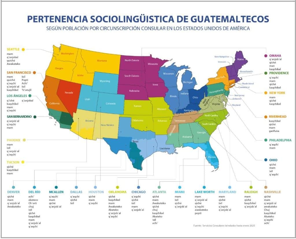 - California (Los Ángeles, San Francisco, San Bernardino): epicentro de la comunidad, con hablantes de Quiché, Mam, Q’eqchi’ y más.